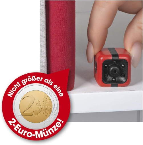 - W przypadku aktywności mini kamera wideo włącza się natychmiast za pomocą czujnika ruchu i rejestruje wszystko w najlepszej jakości obrazu - łącznie z dźwiękiem, a dzięki diodom LED na podczerwień nawet w nocy