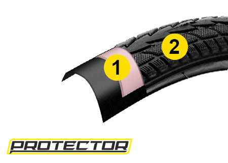 Dodatkowe zabezpieczenie antyprzebiciowe poprawiające sztywność i wytrzymałość opony. Jego zastosowanie zmniejsza opory toczenia przy jednoczesnym zachowaniu dobrej przyczepności do nawierzchni. Protector to gumowa wkładka o grubości około 3 mm wykonana ze specjalnej mieszanki, która znajduje się między bieżnikiem i oplotem opony. Jej zastosowanie znacząco przedłuża żywotność bieżnika i poprawia bezpieczeństwo jazdy.