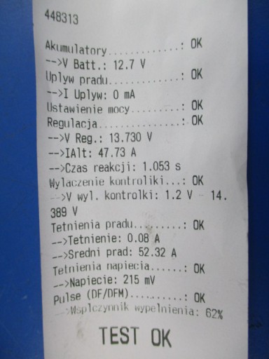 Opis: VALEO, regenerowany, brak oznaczeń , testowany na urządzeniu ONYX TMA, wynik testu na zdjęciu (E46,320d,16V,100kW,136KM,ABS,klima,4d sedan) -jakość A && BMW E46 320d ALTERNATOR VALEO TESTOWANY