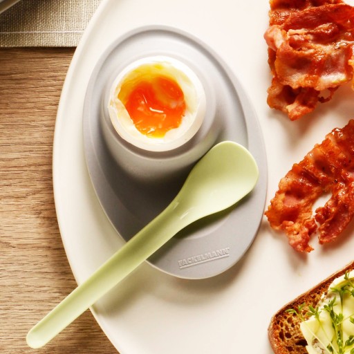 Podstawki na jajka wykonane z tworzywa sztucznego opartego na surowcach odnawialnych, zachowując 100% użyteczności w codziennym użytkowaniu.