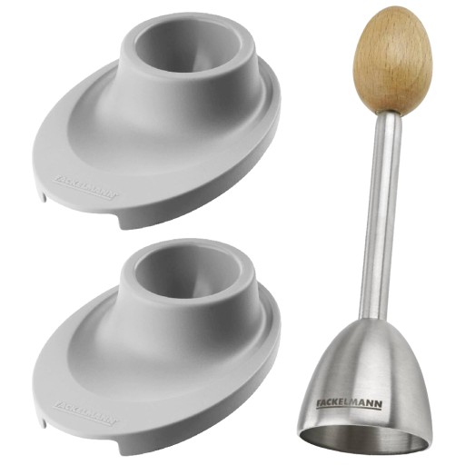 Idealny zestaw podstawki oraz obcinacz do jajek niezastąpiony w każdej kuchni.Obcinacz do jajek firmy Fackelmann ścina ugotowane jajka śniadaniowe szybko i łatwo. Praktyczna pomoc kuchenna wykonana jest ze stali nierdzewnej i jasnego drewna bukowego. Posiada wysokiej jakości system sprężynowy do szybkiego i łatwego otwierania gotowanych jajek śniadaniowych. Po użyciu nakładkę na jajka o wymiarach 14,7 x 4 cm można z łatwością wyczyścić ręcznie. Obcinacz do jajek firmy Fackelmann jest Twoim niezawodnym pomocnikiem, jeśli chodzi o poranne jajko na śniadanie.