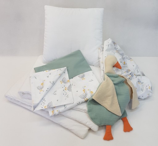 Na tej aukcji oferujemy komplet pościeli z wkładem do łóżeczka dla dziecka - Gąski