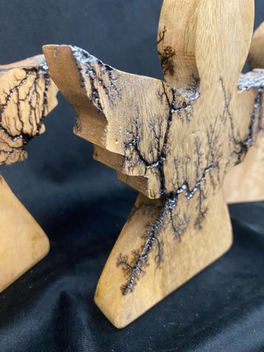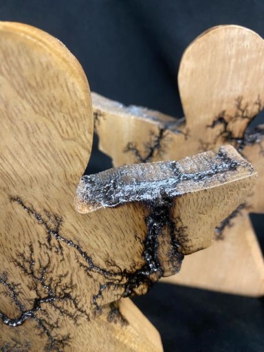 Ręcznie wykonany aniołek z drewna mango. Drewno jest wypalane prądem, który tworzy wyjątkowe wzory, następnie lakierowane.