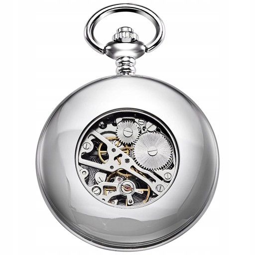Steampunkowy design z widocznymi mechanizmami, duża koperta i czytelna tarcza sprawiają, że ten zegarek kieszonkowy to must have każdego nowoczesnego mężczyzny.