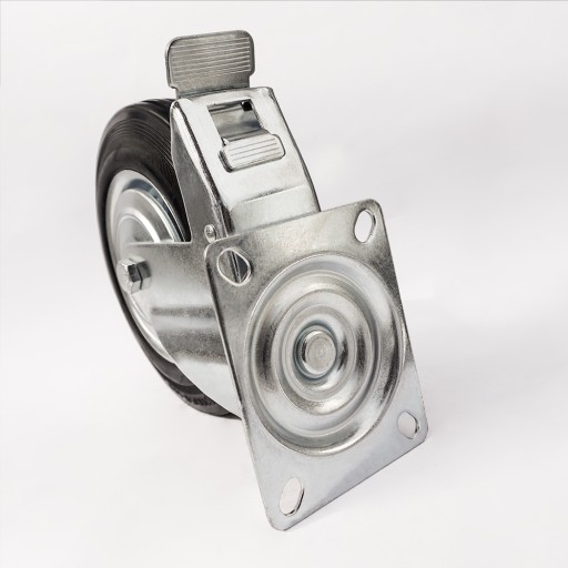 ✅ Mocowanie: tłoczona blacha stalowa cynkowana wyposażona w hamulec, z głowicą skrętną, mocowaną na płytę.