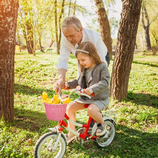 Kosze rowerowe i dzwonki można przymocować do kierownic rowerów dziecięcych. Na rowerze na wietrze tańczyły kolorowe wstążki z frędzlami. Idealne połączenie i świetny prezent dla dzieci na urodziny lub inne imprezy.