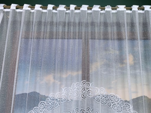 Zdjęcie przedstawia firanę 300x150, firana umarszczona do 180 cm.