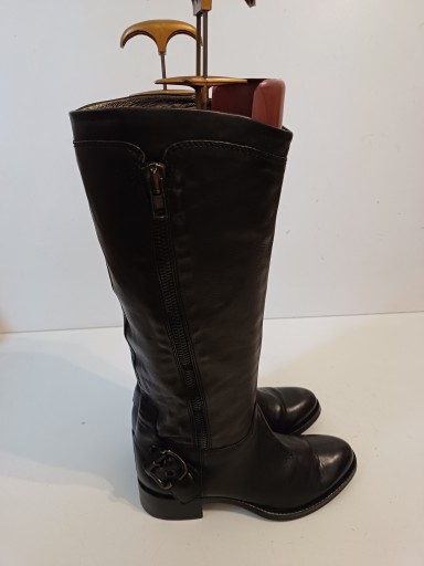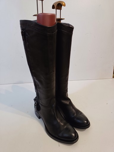 Sprzedam kozaki damskie skórzane marki jak w tytule. Buty noszą normalne ślady użytkowania. Kolor butów w rzeczywistości może się różnić od koloru na zdjęciach co jest spowodowane aparatem i obrazem z monitora. Buty maja rysy I zadrapania.Długisc wkładki podana według rozmiaru butów bo nie da się dokładnie zmierzyć.