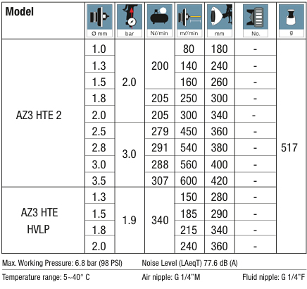 - Niska waga (490g), niskie zużycie powietrza (230 - 275 l/min) oraz atrakcyjna cena czynią ten pistolet doskonałym i ekonomicznym narzędziem pracy.