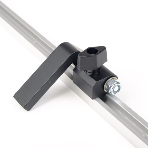 Podnoszony ogranicznik do profili t-track 8/12 pozwala na szybkie i precyzyjne wykonywanie powtarzalnych operacji na piłach, frezarkach i wiertarkach.