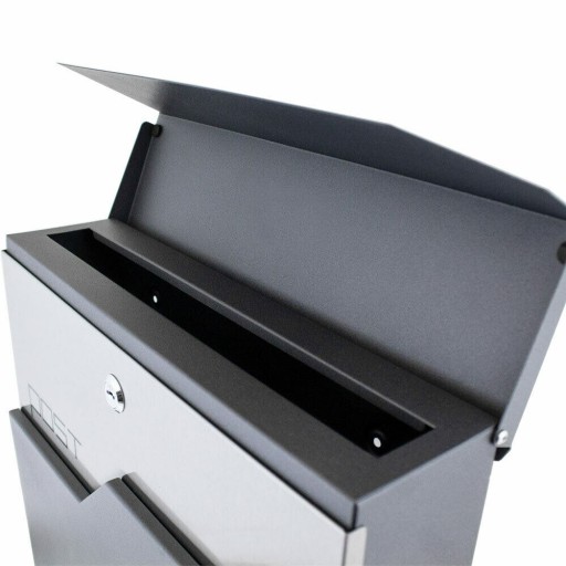 - Klapka skrzynki ze stali nierdzewnej w kolorze grafitu,