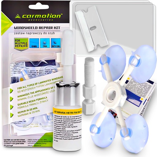 Zestaw do naprawy uszkodzeń szyb samochodowych. Pozbądź się brzydkich pajączków z szyby i zabezpiecz odpryski przed dalszym poszerzaniem.