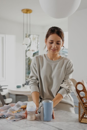 Podgrzewacz do butelek Thermup Go Plus Beige Sand ma nie tylko wbudowany termostat, ale również bezpiecznik, który zabezpiecza sprzęt przed przegrzaniem.