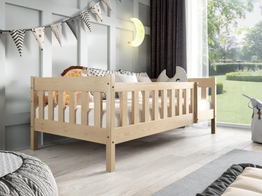 Konstrukcja łóżka wykonana w całości z drewna sosnowego posiadającego certyfikat FSC pokrytego trzema warstwami lakieru bezpiecznego dla dzieci. Mocna stabilna konstrukcja. Materac piankowy w zestawie.