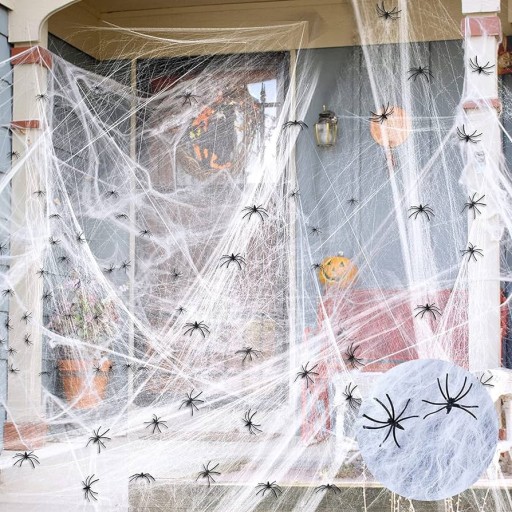 Opakowanie 60 g białej, sztucznej pajęczyny do dekoracji okien, ścian i całych pomieszczeń z okazji Halloween. Pajęczyna jest bardzo wydajna, łatwo się rozczepia i można nią udekorować dużą powierzchnię. Im bardziej rozciągnięta tym lepszy efekt. Pajęczyna bardzo dobrej jakości, stosowana między innymi przez scenografów przy wykonywaniu dekoracji filmowych i teatralnych. W komplecie znajdą Państwo również 12 sztucznych pająków, które dadzą dodatkowy efekt całej dekoracji.