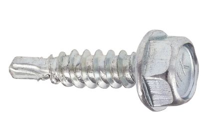 Wkręt samowiercący typu zszywka wykonany w powłoce cynkowej, do mocowania blach na zakład, bez podkładki. Przeznaczony min. do montażu łączników podmurówki.