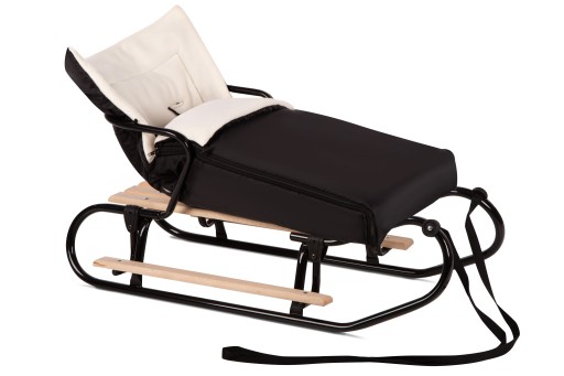 Sanki CLASSIK z oparciem, podnóżkami i śpiworkiem dla dzieci.