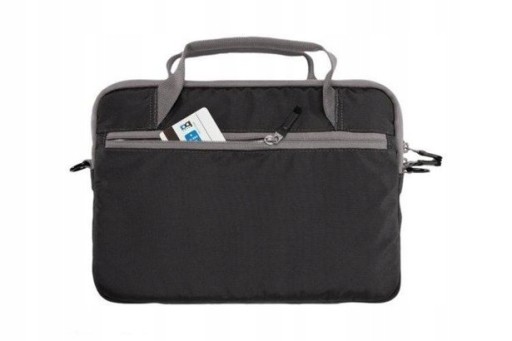 Torba została wykonana z eleganckiego, wytrzymałego, czarnego nylonu. Posiada dwie zewnętrzne kieszenie do przechowywania np. zasilacza, dokumentów ,kluczy lub drobnych akcesoriów biurowych. Torba posiada jedną komorę główną zamykaną na zamek błyskawiczny, w której pomieścimy laptopa do 11", wyposażona jest w ochronę piankową z podwójną wentylacją. Z tyłu torby znajduje się kieszeń, która również zamykana jest na zamek.