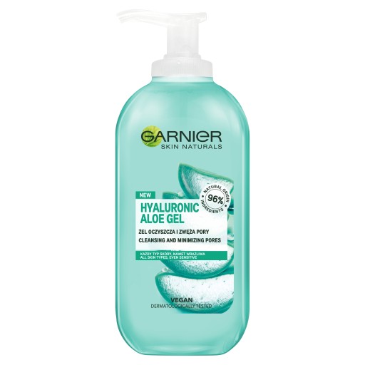 Hyaluronic Aloe Gel od Garnier zapewnia oczyszczoną skórę i pozostawia ją pełną blasku. Żel łączy ekstrakt z aloesu oraz kwas hialuronowy. Dzięki zawartości kwasu hialuronowego cera będzie nie tylko nawilżona ale także jędrna i gładka. Aloes koi skórę i łagodzi wszelkie podrażnienia. Cera będzie miękka a pory mniej widoczne.