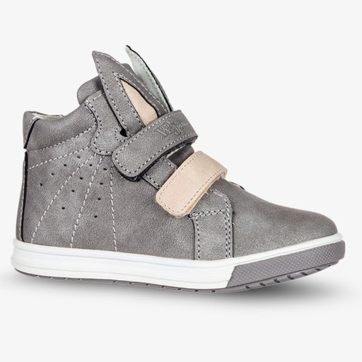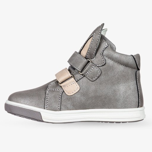 Popielate botki na rzepy z uszkami ze skórzaną wkładką Casu 1T23003