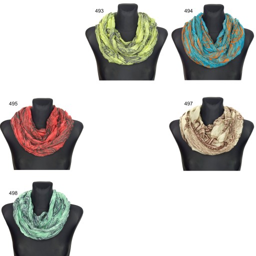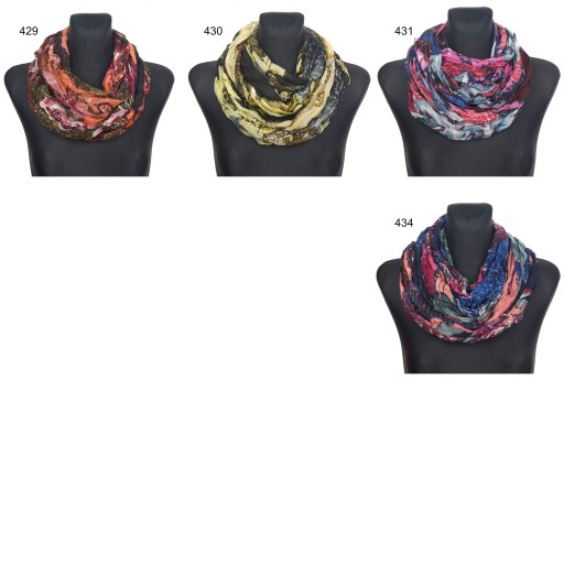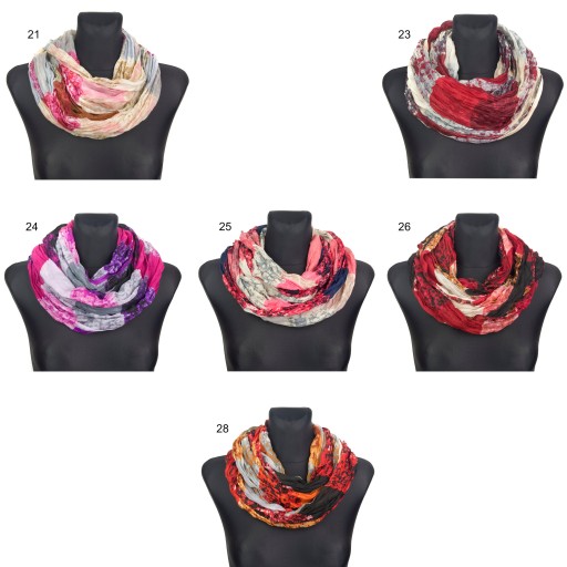 Dużo wzorów w ofercie, m. in. w kwiaty, panterka, groszki, wzory roślinne, wzory geometryczne, i modna kolorystyka gwarantuje, że każda kobieta znajdzie odpowiedni szalik komin dla siebie.