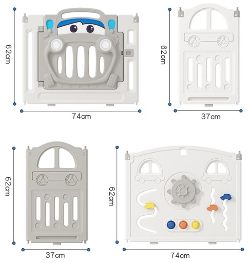 - Zestawy można dowolnie łączyć, aby powstał większy kojec lub kącik zabaw.