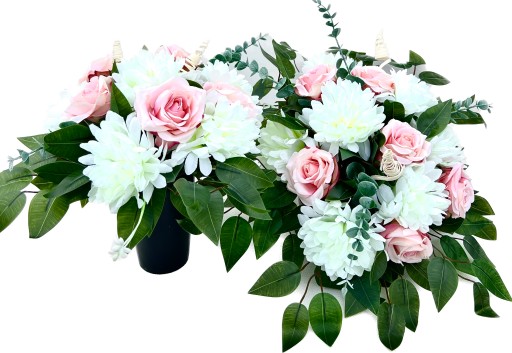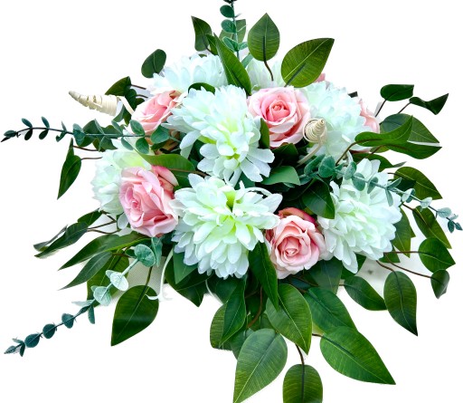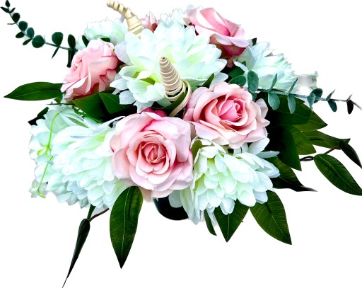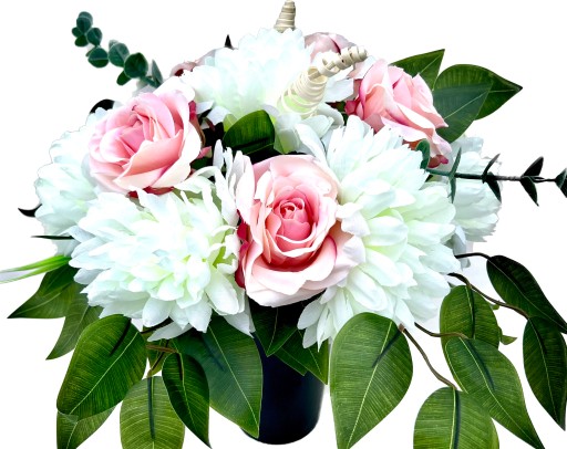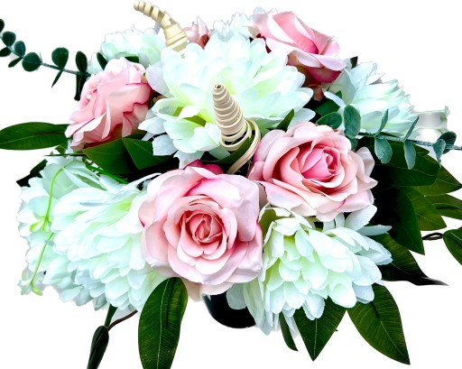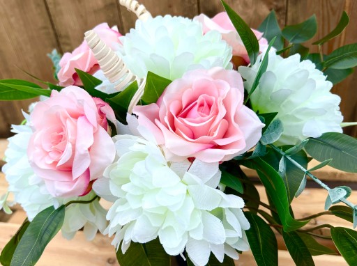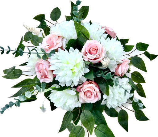 Wszystkie kwiaty są sztuczne. Wszystkie nasze kompozycje wykonywane są ręcznie w naszej pracowni z dużą starannością.