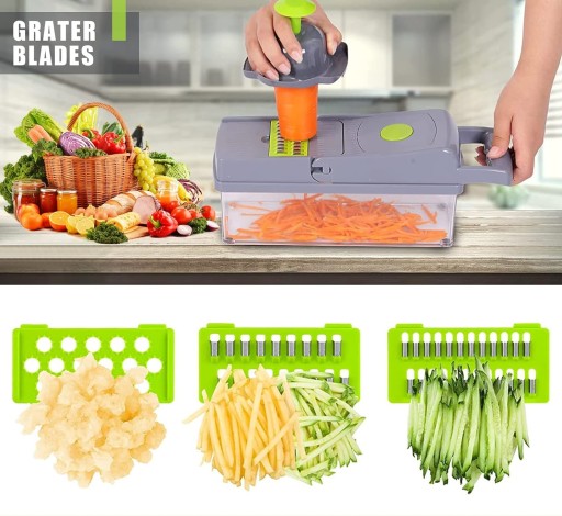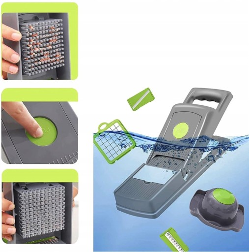 - Wielofunkcyjność: 15 wymiennych części sprawia, że masz pełną swobodę w doborze kształtu i grubości pokrojonych warzyw i owoców.