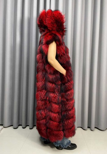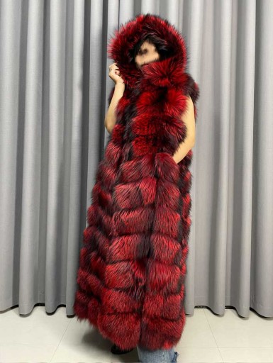 KAMIZELKA FUTRO NATURALNE LIS DŁUGA ZJAWISKOWA UNIKATOWA KOLORY NOWOŚĆ HIT Długość do połowy łydki