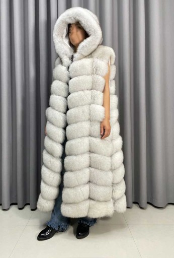 KAMIZELKA FUTRO NATURALNE LIS DŁUGA ZJAWISKOWA UNIKATOWA KOLORY NOWOŚĆ HIT Kaptur z kapturem