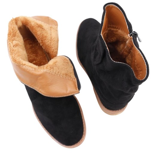 BOTKI DAMSKIE OCIEPLANE NA OBCASIE BUTY ZIMOWE JESIEŃ NA ZAMEK CZARNE