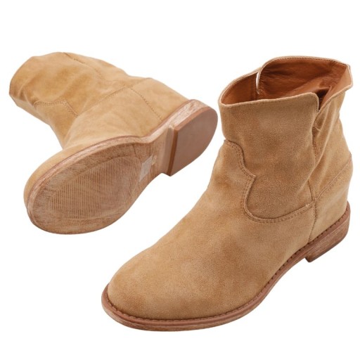 Женские ботинки изолированы с скрытыми клиньями зимние замшевые туфли верблюда