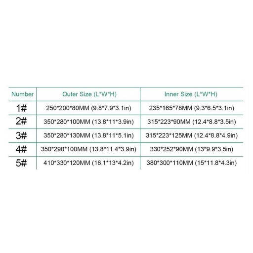 C:350x280x130mm(13.8x11x5.1in)/315x223x125mm(12. 0,8 x 4,9 cala)