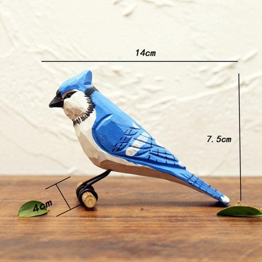 Figurka ptaka miniaturowy styl skandynawski zwierzęcy drewniany rzeźbiony w drewnie Ornament niebieski
