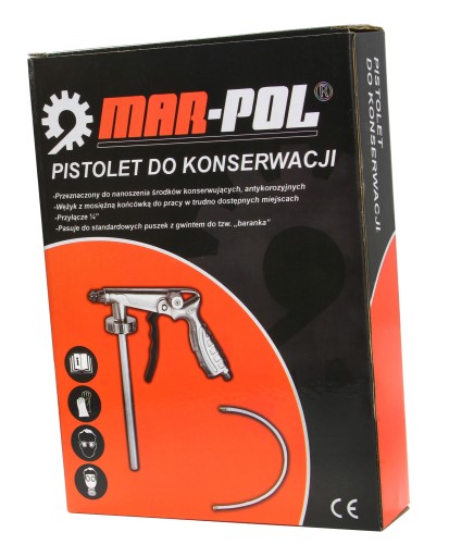 Pistolet jest przeznaczony do aplikacji środków antykorozyjnych, konserwacji podwozi samochodowych środkami bitumicznymi jak i konserwacji karoserii, profili zamkniętych woskami przy zastosowaniu dołączonego wężyka o długości 500 mm zakończonego mosiężną końcówką rozpylającą.