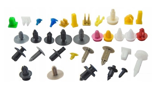 Uniwersalny zestaw spinek, kołków, klipsów zatrzasków samochodowych do mocowania tapicerki, elementów plastikowych, zderzaków, czy uszczelek.