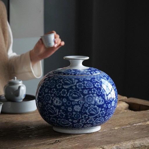 Ceramiczny słoik na herbatę Niebiesko-biała porcelana z pokrywką do wystroju biura