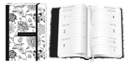 KALENDARZ KSIĄŻKOWY B6 TERMINARZ TYGODNIOWY 2024 R UV BLACK KWIATY