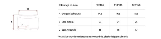 Tabela rozmiarów dotyczy kategorii dziecięcej.