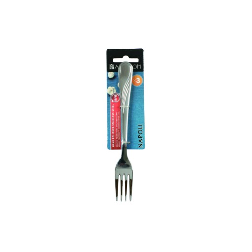 Komplet 3 sztuk widelców stołowych Napoli marki Ambition. Sztućce z serii Napoli posiadają klasyczny kształt, zdobione są delikatnym motywem fali. Wykonane z wysokiej jakości stali nierdzewnej. Rodzaj stali sprawia, iż sztućce są twardsze, bardziej odporne na korozję i pełniejsze blasku. Dzięki wysokiej jakości i subtelnemu wykonaniu sztućce Napoli są najchętniej wybieraną linią przez klientów.