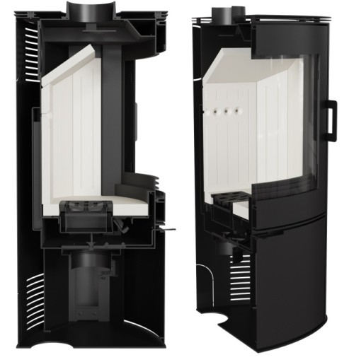 Efektywniejsze spalanie i dłuższe utrzymywanie temperatury następuje dzięki wyłożeniu komory spalania TERMOTEC, materiałem akumulującym ciepło, który podwyższa temperaturę w palenisku.