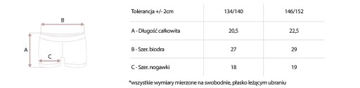 Tabela rozmiarów dotyczy kategorii młodzieżowej.