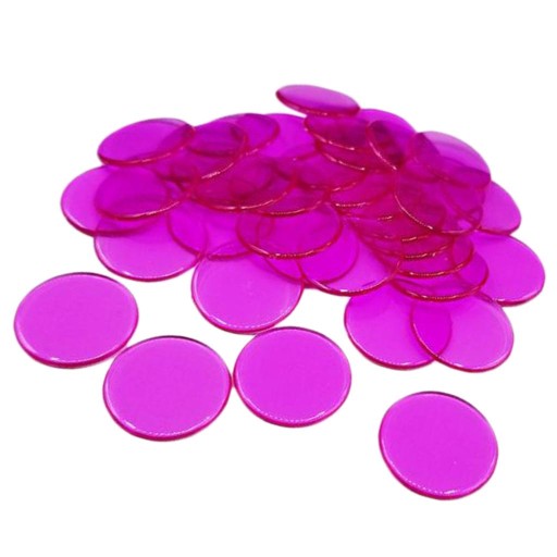 Счетчики для подсчета фишек. Маркеры разных цветов для фишек для бинго. Прозрачный, розовый, красный.