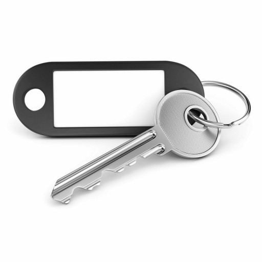 Plastikowe zawieszki przeznaczone do oznaczania kluczy. Umożliwiają szybką identyfikację właściwego klucza. Drugi otwór umożliwia przytwierdzenie dodatkowego klucza. Opakowanie zawiera 10 sztuk w kolorze czerwonym.