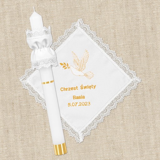 Świeca na chrzest szatka do chrztu haft + (gratis okapnik)