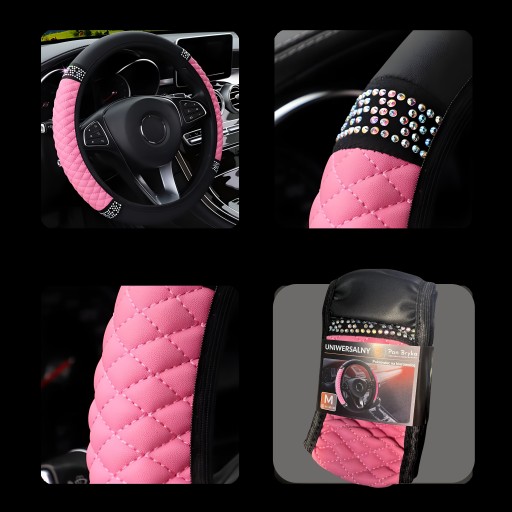 RÓŻOWY POKROWIEC NA KIEROWNICE NAKŁADKA RÓŻOWA PIKOWANA CEKINY UNIWERSALNA