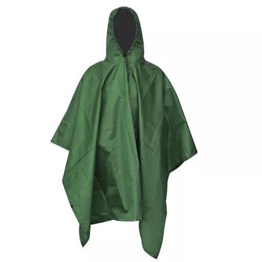 Poncho zostało zaprojektowane zarówno z myślą o mężczyznach jak i kobietach. Rozmiar jest uniwersalny - poncho jest duże, więc będzie pasować praktycznie na każdego. Płaszcz jest solidny i wytrzymały. Płaszcz zakłada się przez głowę. Posiada kaptur z małym daszkiem, osłania twarz przed deszczem. Prezentowane poncho to idealna propozycja dla miłośników survivalu, myśliwych, wędkarzy, podróżników i entuzjastów turystyki kwalifikowanej.