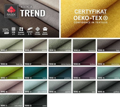 - RÓŻNORODNE TKANINY MEBLOWE- oznaczone światową certyfikacją OEKO-TEX®