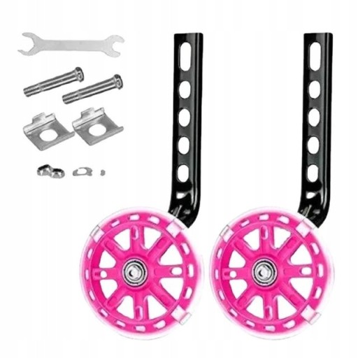 Uniwersalny zestaw ŚWIECĄCYCH kółek podporowych przeznaczony do rowerów dziecięcych o średnicy kół od 12" 20" . Pomagają w nauce utrzymywania równowagi podczas jazdy rowerem.