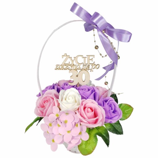 PIĘKNY Bukiet kosz z kwiatami mydlanymi IDEALNY prezent na Dzień Mamy